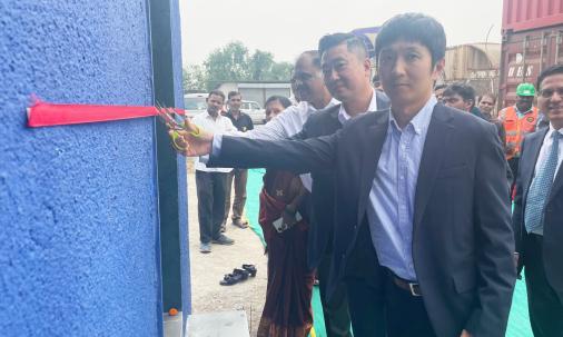 bouquet to Mr. Girish Thomas, acknowledging the support and cooperation from JNPA. Following this, Mr. Lee delivered a heartfelt speech, expressing gratitude to the local authorities and project partners for their collaboration in bringing the facility to fruition.