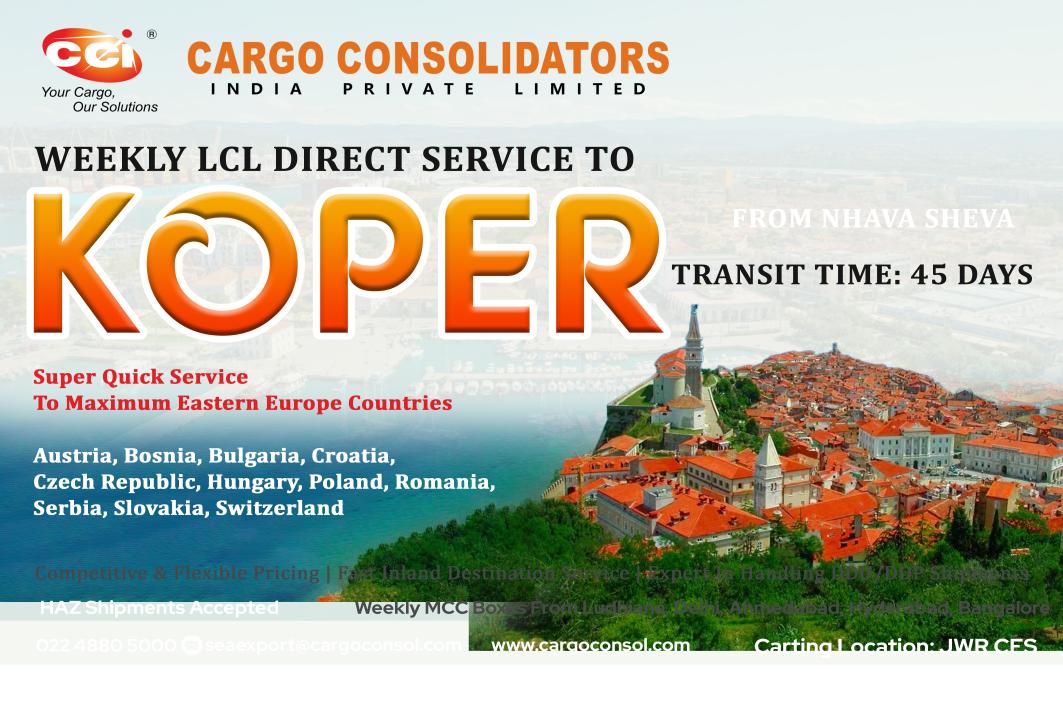 MSC Thais IS444A UK, North Continent & Other Mediterranean Ports. HimalayaExpress NBCL Axis Shpg. Felixstowe, Rotterdam, Hamburg, Antwerp & All Inland Desti. Dronagiri-1 Service Allcargo Allcargo Log. UK, North Cont., Scandinavian & Med. Ports. Dron.2&Mul. ICC Line Neptune Felixstowe, Hamburg,Rotterdam & other Inland Dest. GDL-3 & Dron-3 GLS Global Log. UK, North Continent & Scandinavian Ports. JWR