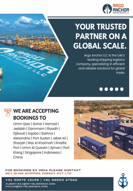 SCI Delhi (V-IP442A) 19-10-2024 Hazira APL Qingdao (V-OINI5W1) 20-10-2024 ACMTPL Maersk Kensington (V-441W) 20-10-2024 Salalah