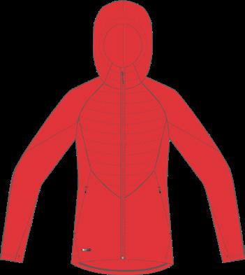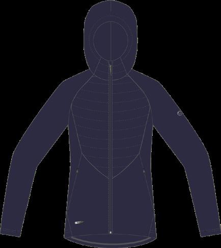 Hybrid zip jacket with hood in micro light with a soft brushed backside. Padded wind fabric at front and back. Regular fit. Sizes: XS-XXL 378 509 590 887