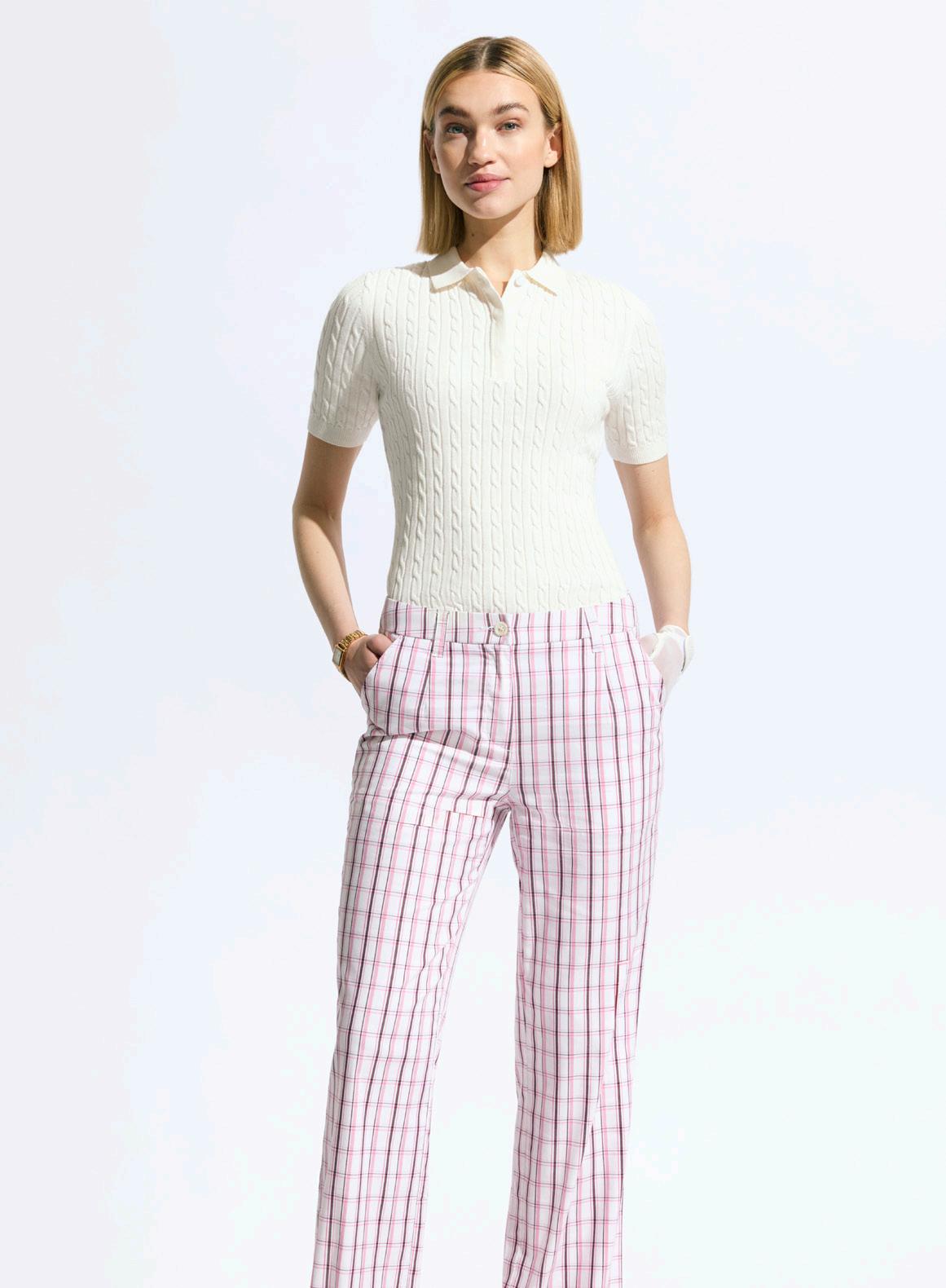BOTTOM LEFT: 1000273 MADELENE 1/2 S POLOSHIRT, 1000799 CHECKED PANTS 32 INCH.