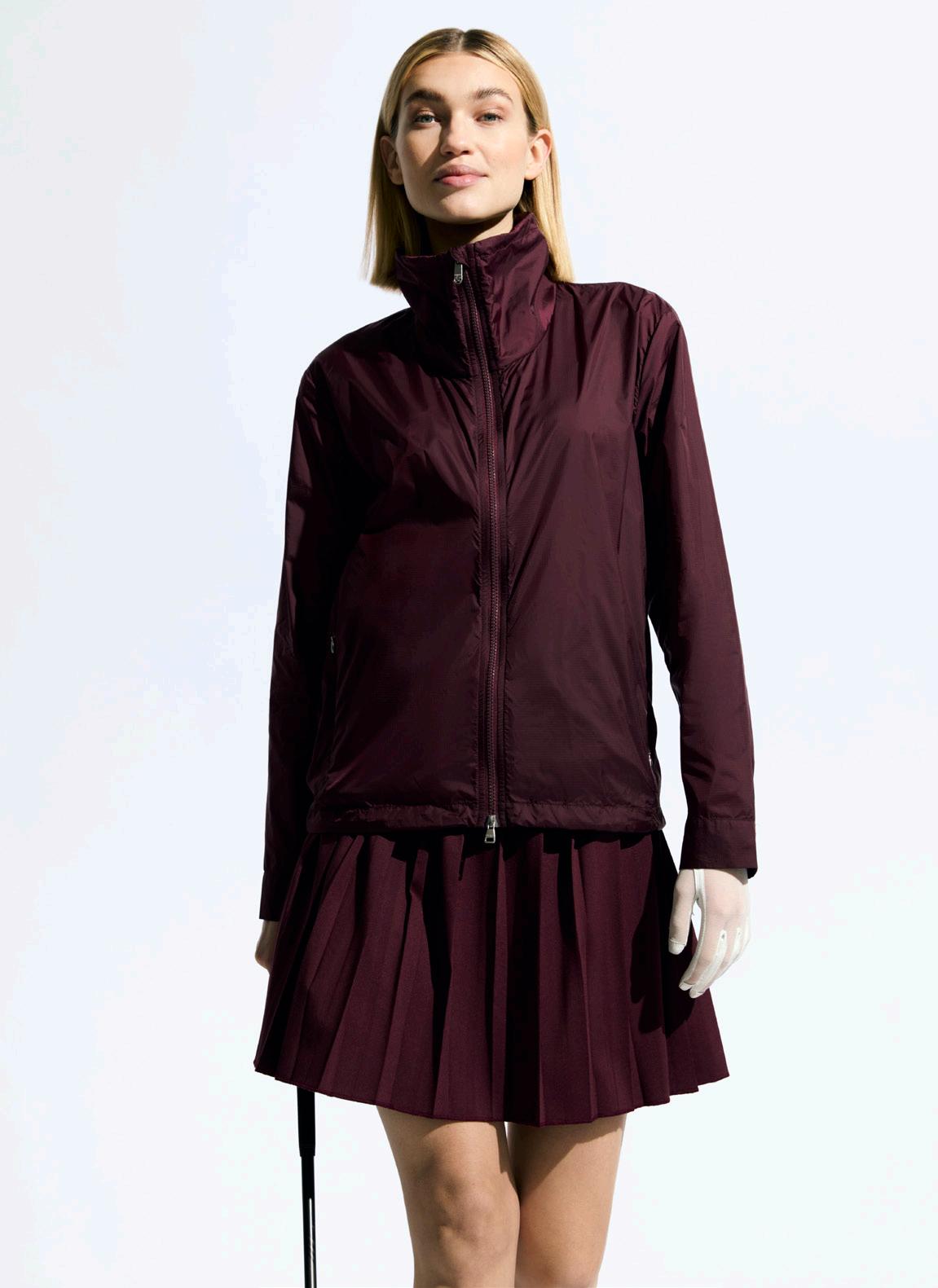 TOP LEFT: 1000820 WINDSHIELD JACKET, 1000485 PLEATED SKORT 45 CM. BOTTOM RIGHT: 1000776 SHEERMOTION CAP S DRESS 94 CM.