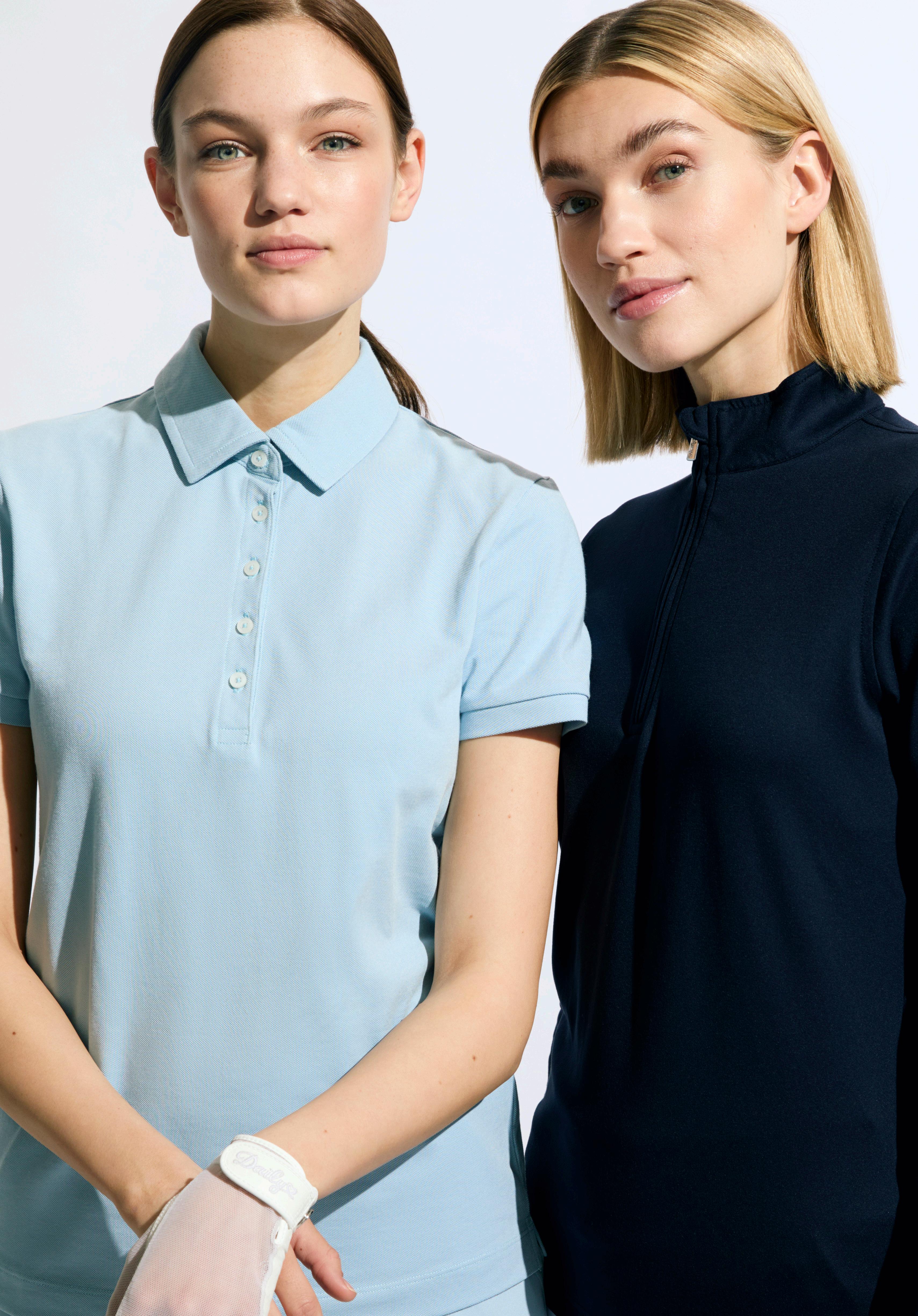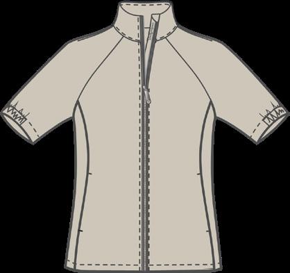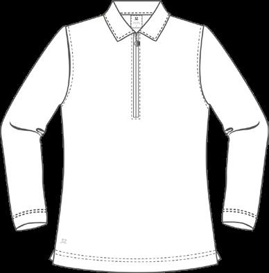 Quick dry. Single jersey with frill at sleeve and buttoning Relaxed fit. Sizes: XS-XXL