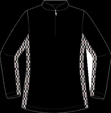 Quick dry. Full dull single jersey. Half zip. Printed back. Relaxed fit. Sizes: XS-XXL