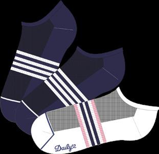 1000858 AIR SNEAKER SOCK, KIT OF 3 Polyester 98% Elastane 2% Ribbed foot for best fit and strutured knit at top of foot for best breathability. Jacquard stripe. Kit of 3 socks mixed colors.