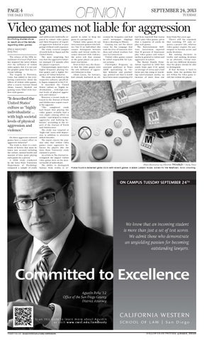 Video games not liable for aggression Conflicting studies show no result about the debate regarding video games ERICA MAHONEY Daily Titan