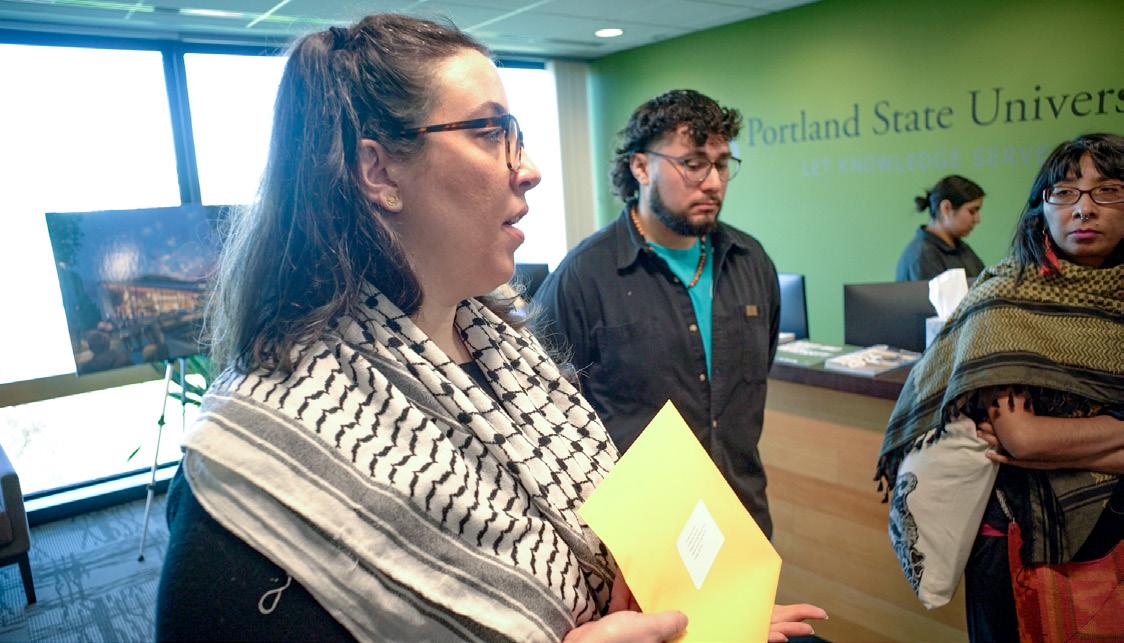 A group of Portland State students and faculty, alongside members of Democratic Socialists of America and Jewish Voice for Peace, hand-delivered a letter signed by over 1,300 students, faculty and community members to the office of President Ann Cudd in the Richard & Maurine Neuberger Center on April 22.