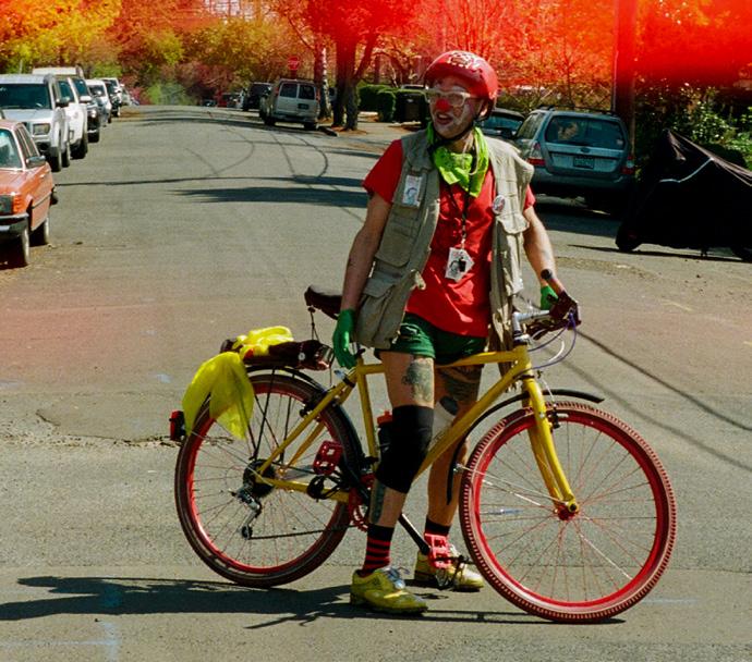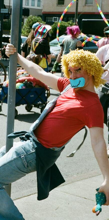 Seen riding a tall-bike throughout the parade was Quinn Richards, a PSU Student and local clown performer. Richards was one of the main organizers of the event.