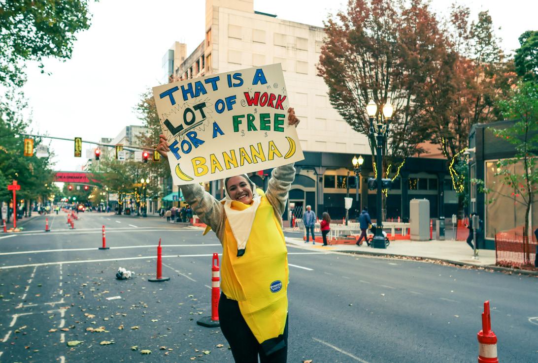 only ingesting electrolytes and energy gels, as well as from the four hours of running I had just done. Once I was only a few hundred yards away from the finish line it felt like an impossible challenge to finish that mile. Even though I had just ran 26 miles, another few hundred yards felt like an insurmountable task. That was until I began to hear the roar of the crowd at the end. Only with the support of fellow Portlanders was I able to finish the rest of the marathon and cross that finish line. And it was all worth it to be met with flowers and a sign from my Editor in Chief. It was a perfect culmination of everything I love about the city. Powering through sickness to make a video showcasing our amazing city will always be worth it. If you ever have the chance to go and run a marathon through Portland, blaze your own trail and make every mile count.