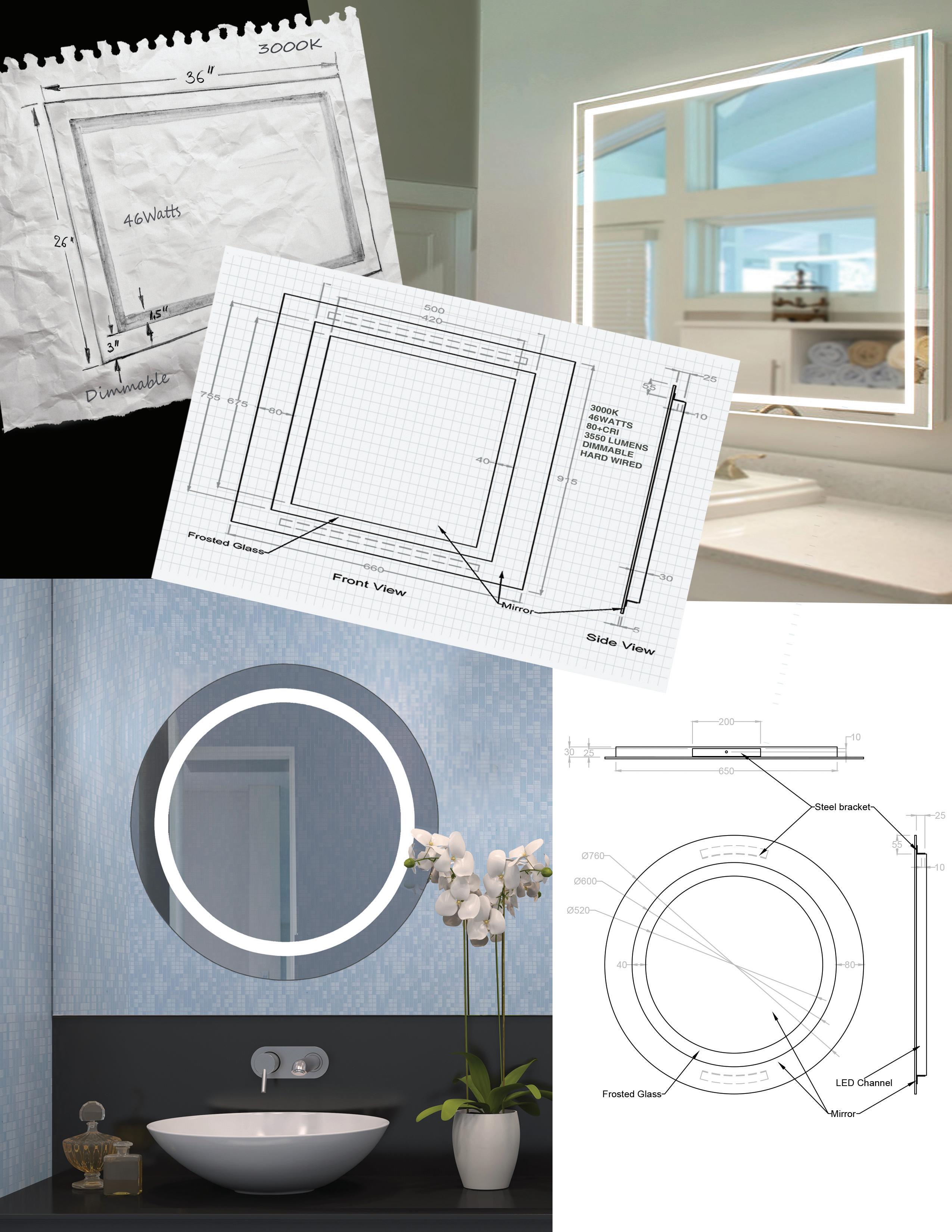 LED Lighted or Backlit Mirrors. 3000K, 80+ CRI, Dimmable, Hard-Wired