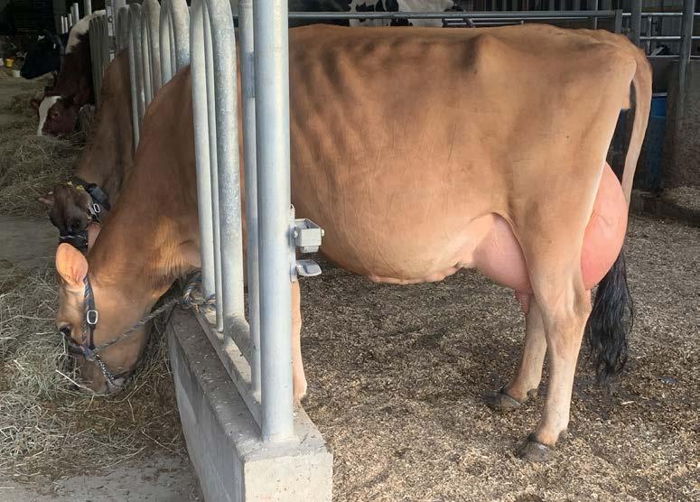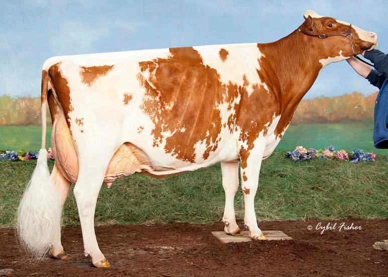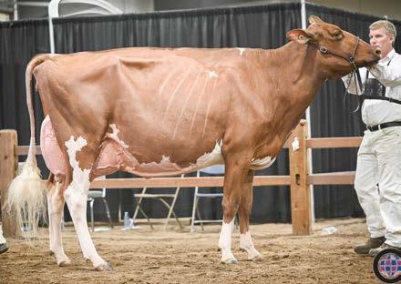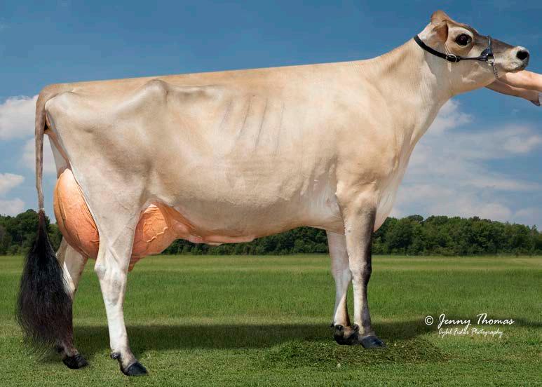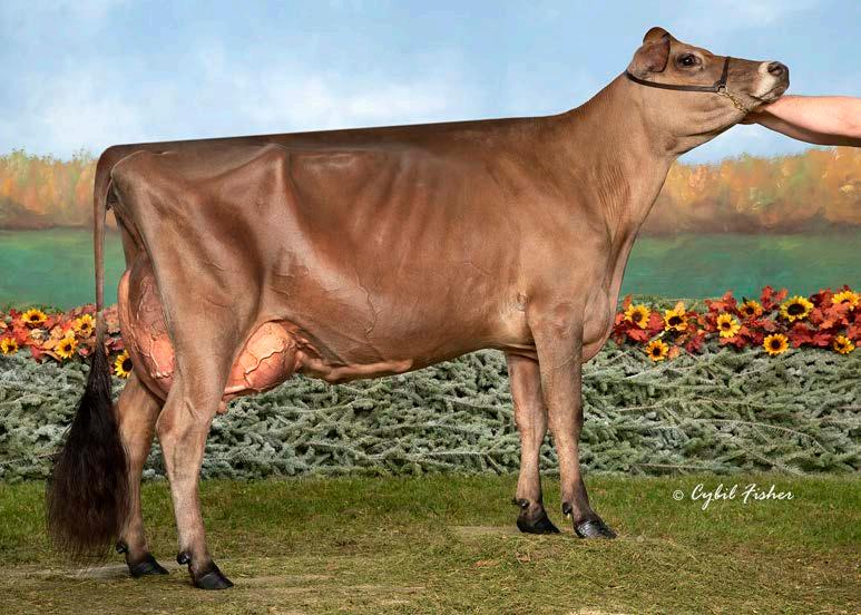 MILK & HONEY VADEN FERN (EX-93) From the same family as Lot 38 J-Folts Chocolatier Famous 38 Born 12/4/2022 Reg. 840 3268714568 GENTRYS FREYA 840 3208029643 EX-90 3-04 1-10 2 277 18940 5.0 938 3.3 623 RAPID BAY INDIANA GENTRY-ET CAN 105762718 AJCA 12/22 GPTAT 95%R +1.5 JUI 8.0 JPI 90%R -173 STONEY POINT TEQUILA FELISHA-ET USA 119702439 EX-93 6-02 5-06 2 305 28570 5.3 1509 3.6 1033 4-02 2 305 20800 5.7 1195 3.6 754 2-01 2 305 15020 4.6 685 3.5 529 MATERNAL SISTER: Stoney Point Belmont Fashion (EX-94) Grand Champion, CT State Show ‘18 Grand Champion, NY State Fair ‘17 Dam of Milk & Honey Vaden Fern (EX-93) Nom. ABA All-American 4-Year-Old ‘22 ABA All-American Junior 3-Year-Old ‘21 Nom. ABA All-American Junior 2-Year-Old ‘20 AVONLEA JOEL CHOCOLATIER-ET CAN 12619755 JHIF JNSF A2A2 CDCB 12/22 GPTA 78%R -1263M -48F -44P AJCA 12/22 GPTAT 80%R +0.8 JUI 8.5 GJPI 75%R -73