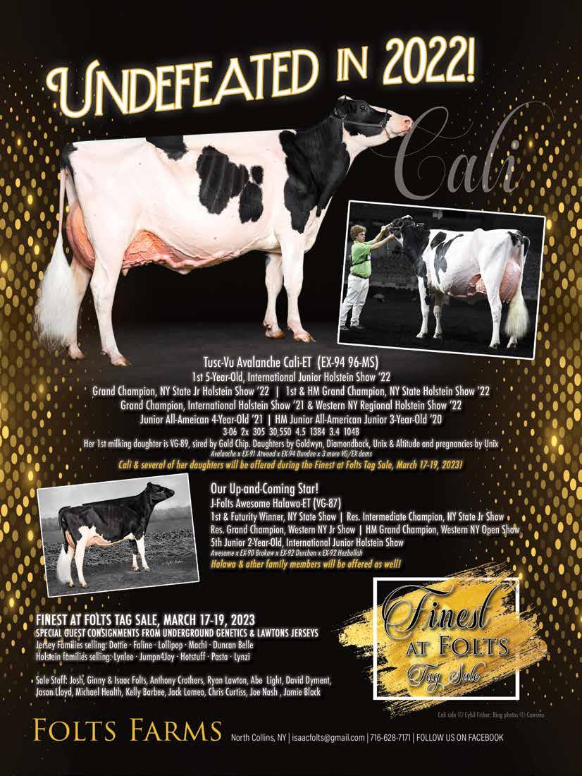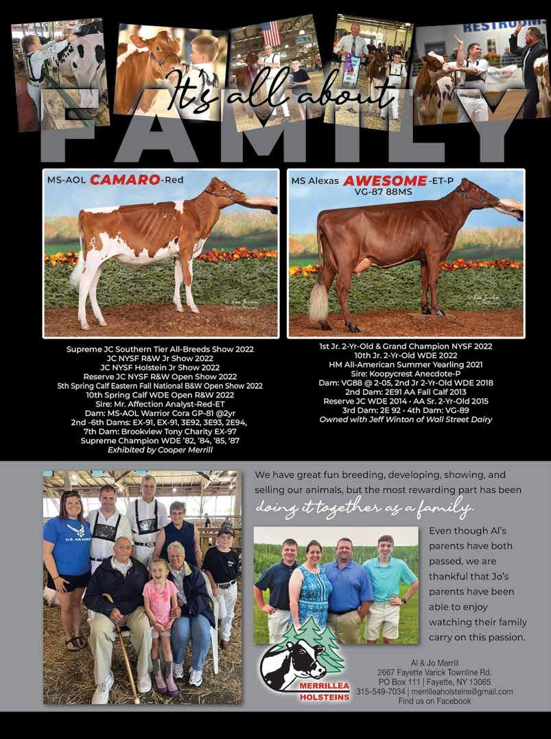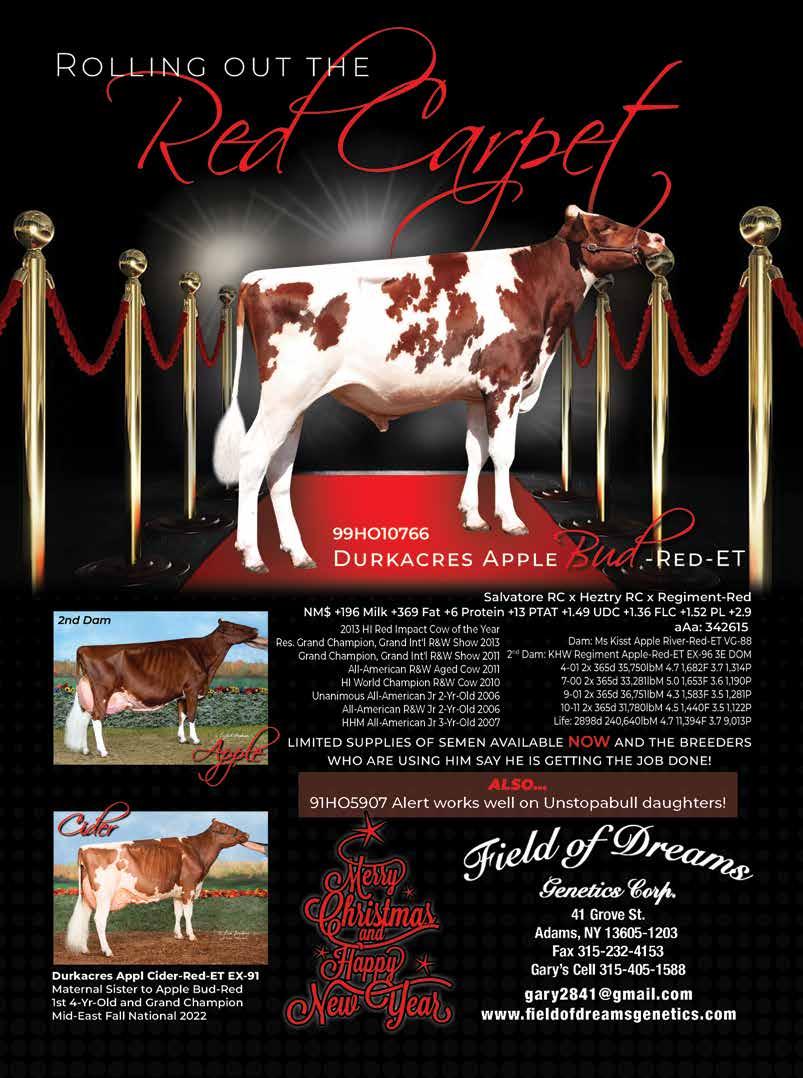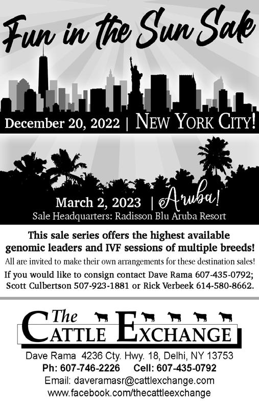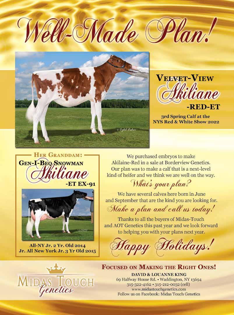 PLAN AHEAD FOR 2023! Make your plans to advertise your All-NY winners in the January-February 2023 issue! Reserve your spot by December 9th and then we will work on your content to create an eye-catching ad for your genetics! The March-April issue will be the All-NY Red & White issue and the Youth issue! Feature your special Red & Whites and your youth in this issue! The ad deadline is February 14th! Remember, Print Media…. Has a longer shelf life Is more memorable Allows for deep analysis Has the ability to resurface Is easily pared with trusted info And there is more time spent in a magazine! Consistency is Key in Advertising Contact Melissa Hart to reserve your space in the premier dairy magazine of New York! 517-398-1957 or email: farm.writer@hotmail.com 4 4 4 4 4 4