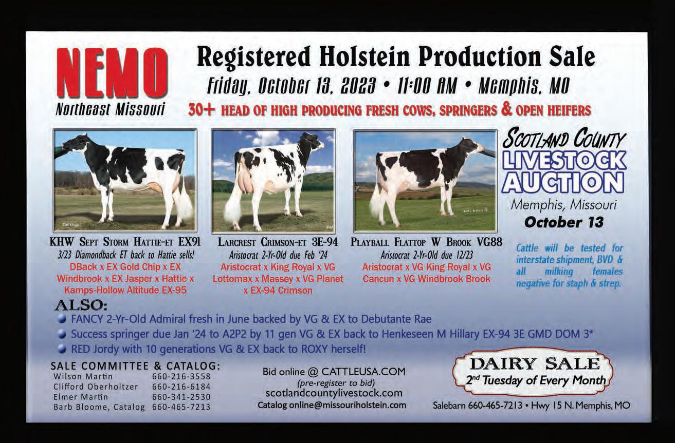 4 the Pulsator 6 7 10 11 13 14 15 16 18 22 MO Dairy Policy Corner Ozark Empire Fair Results Missouri State Fair Results Jersey Cattle Club Show Results MO Holstein Schoen Farm MO Holstein Juniors Veterinarian Corner Fall Fertility of Forages No reproduction of material is allowed in any form without the permissions of the Pulsator Magazine. The content of this magazine has been produced with utmost integrity. However, we do not assume responsibility for errors or ommissions. Next Ad Deadline: Nov. 20 Ad Size Color Black/White Full 275 190 Half 170 100 Quarter 110 65 Business Card 65 35 Ad Size Color Black/White Full 425 325 Half 260 185 Quarter 140 95 Business Card 80 45 BREEDER RATE COMMERCIAL RATE SUBSCRIPTION RATE $25/YEAR 4 ISSUES A YEAR Jodi Wright 417-840-3203 jwright@missouriholstein.com Shannon Kleiboeker 417-737-2876 mopulsator@gmail.com Jenna Wilson 417-459-8794 mopulsator2@gmail.com Vol. 54, No 4- 2023 10% DISCOUNT ON YEARLY ADVERTISING We Welcome Subscribers and Advertisers From All States