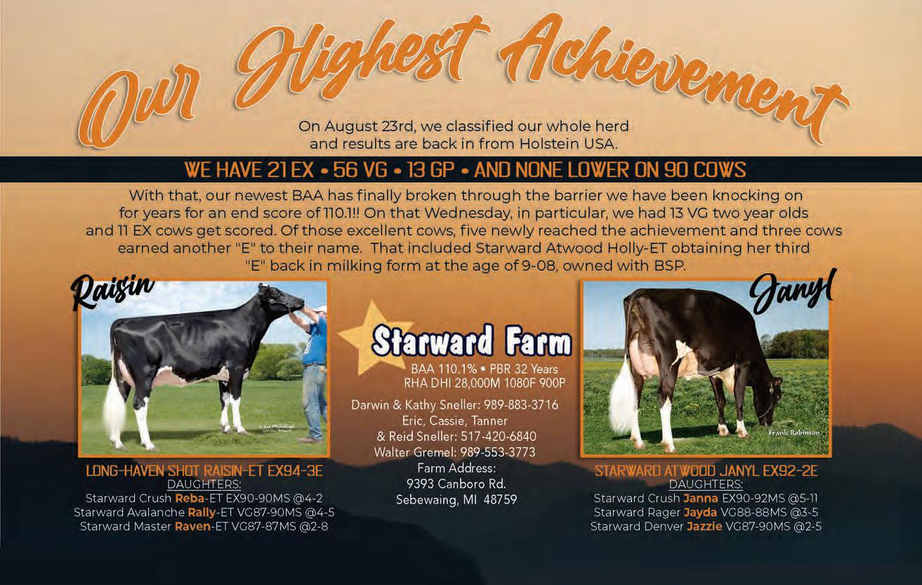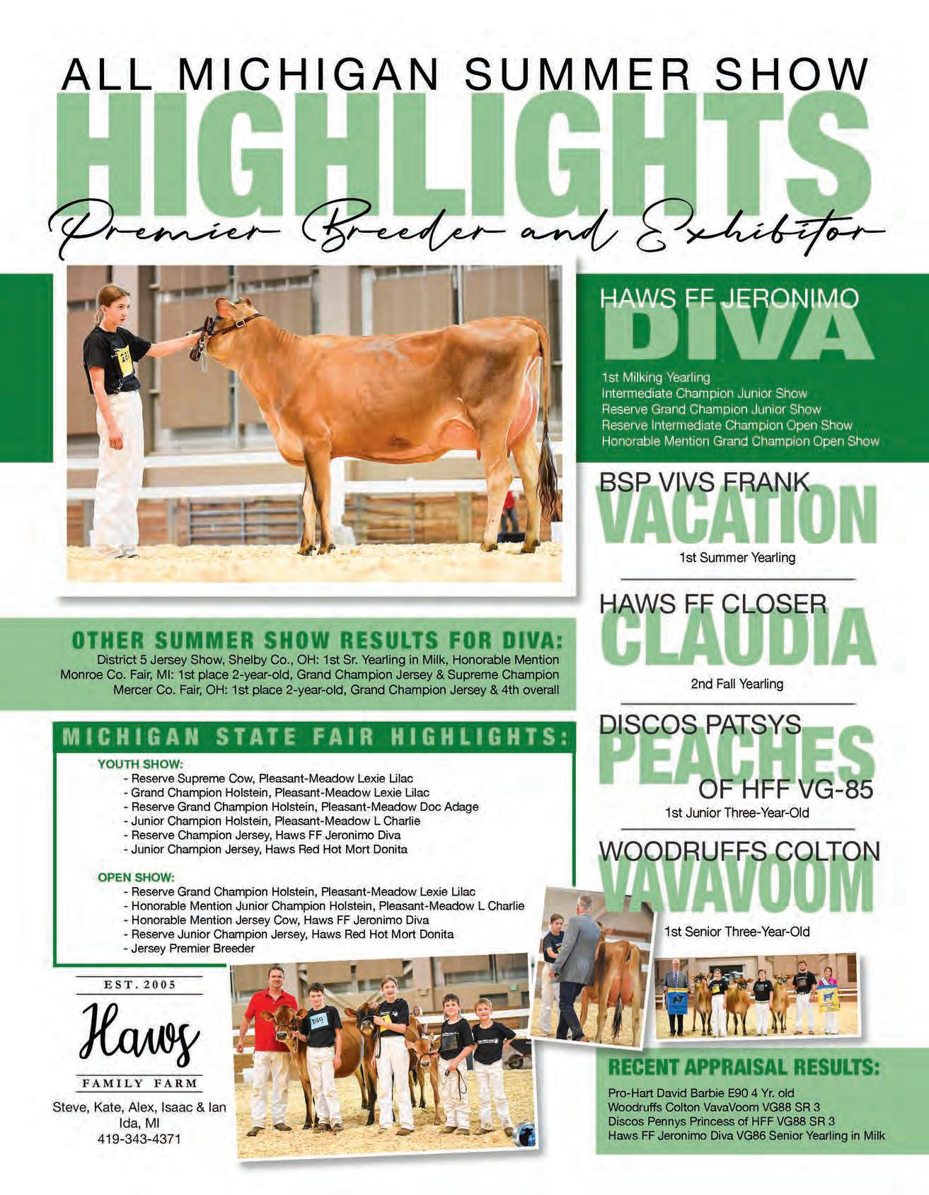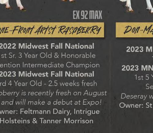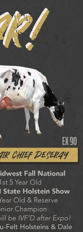 L-R: HAS IT ALL, HOMER 08/23 CDCB-S/HA/Zoetis Genomic Evaluation. Rel. %: HAS IT ALL 82 Milk, 81 Type, 55 Z-MAST; HOMER 80 Yield, 79 Type, 75 DPR. ®TPI is a registered trademark of Holstein Association USA. Your Success Our Passion. is a registered trademark of Select Sires Inc. ™Showcase and gender SELECTED are trademarks of Select Sires Inc. gender SELECTED semen is processed using Ultraplus™ technology. Ultraplus is a trademark of STGen LLC. HAS IT ALL and HOMER photos by Thomas. = gender SELECTED™ = Showcase™ S-S-I Doc Have Not 8784-ET (EX-96-EX-MS), dam of HAS IT ALL and HOMER, photo by Fisher. 7HO16295 HAS IT ALL 7HO16791 HOMER +2888 GTPI® +1,660 Milk +2.90 Type +2.47 UDC 102 Z-MAST +2858 GTPI +1,051 Milk +2.75 Type +2.50 UDC +0.7 DPR Add excellence to your herd! Have Not 8784 recently added another point to her final score, making her the breed’s newest EX-96 cow. Her sons, HAS IT ALL and HOMER, combine high type, excellent udder traits and production into one complete package. Contact your Select Sires representative and place your order today! Select Sires MidAmerica Illinois 41 W 394 U.S. Hwy 20, Hampshire, IL 60140 Phone: (847) 464-5281 Select Sires MidAmerica Utah 833 West 400 North, Logan, UT 84321 Phone: (435) 752-2022