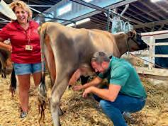Below: Budget committee member and House Rep Chris Sander tries his hand at milking in the Starstruck string