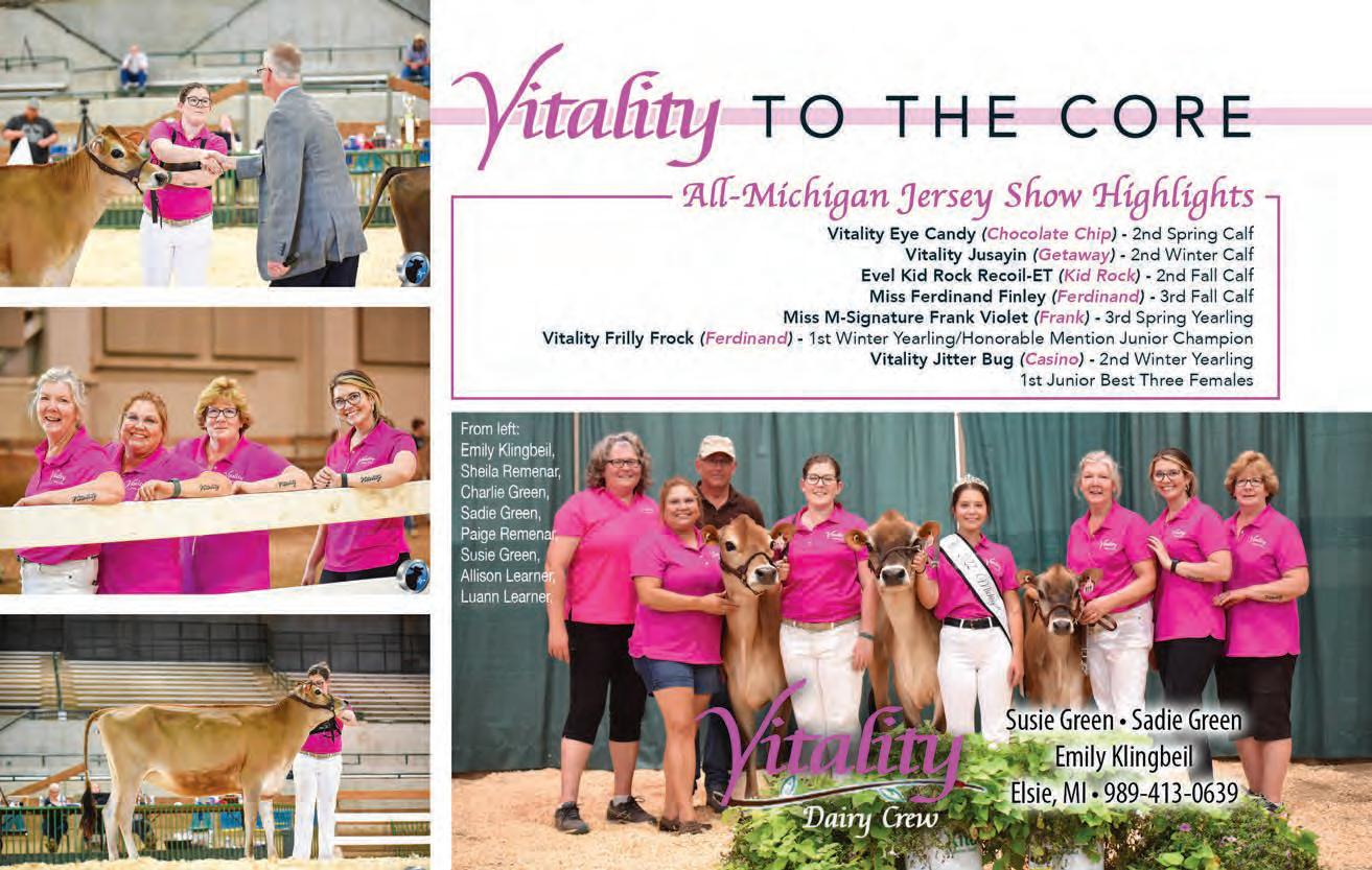 One aspect of these milk records is their breeding program. Melinda handles most of the breeding and sire selection. Building off of the groundwork her father John has laid over the years, Melinda’s personal goal is “how can I make the best version of this cow.” She aims for “pretty girls that work and get bred” For example, 4 year old, Schoen Moonwind P 2969, or “Mabell” who they recently exhibited at a local fair is just one example of cattle Melinda strives for. A cow that looks good in the show ring and puts a lot of milk in the tank. This lactation, Mabell had a ME of 33,000, and is scored VG 86. Mabell also ranked 1st in the state for her fat at 5.7 and 3rd for protein at 3.4 this year. She is a cow Melinda is personally proud of. Melinda has a picture of her own ideal cow and strives for her with each breeding. Working towards the goal of having a rolling herd average over 30,000, Melinda puts a lot of thought and passion into working to breed each new generation of animals.
