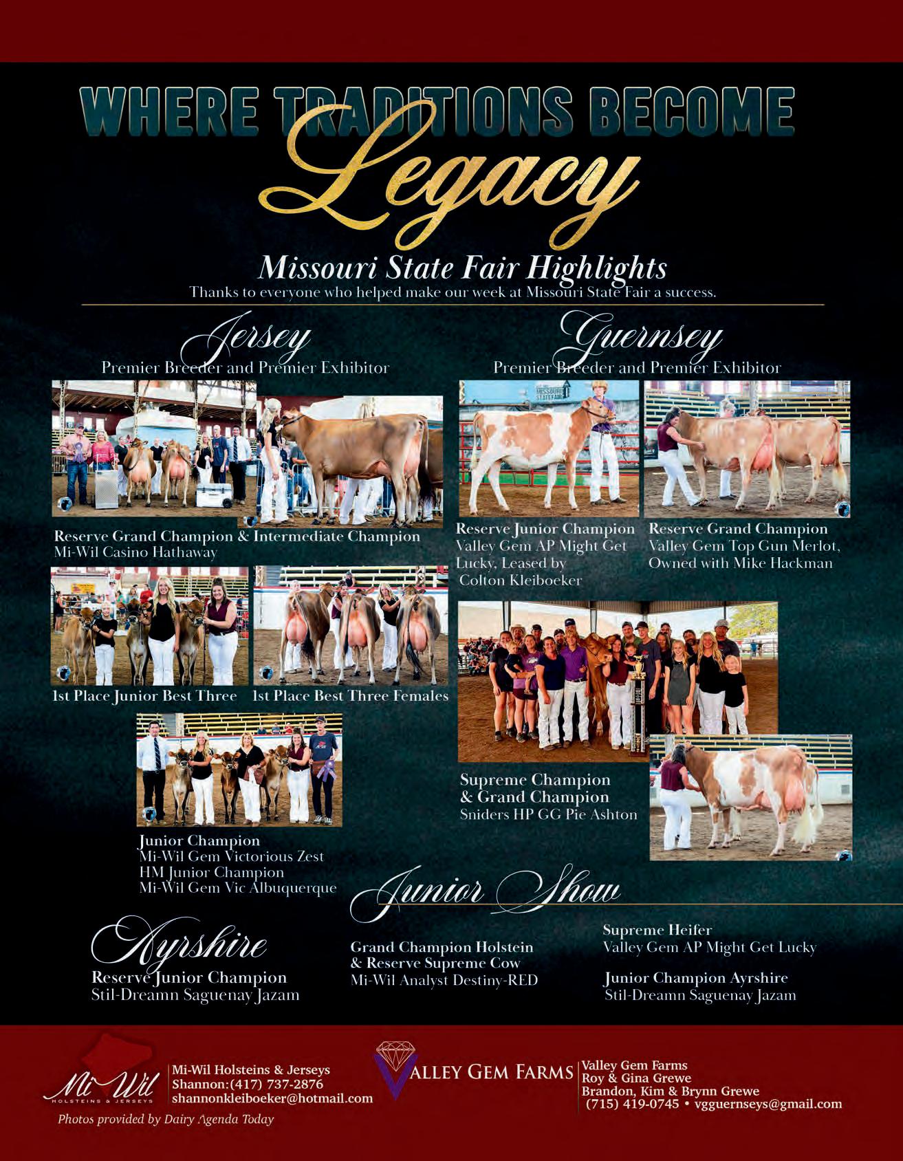Missouri Dairy lobbied for state funds to update the dairy industry study last completed in ����. This will provide the opportunity to identify how the industry has evolved and ensure the path forward is bright.