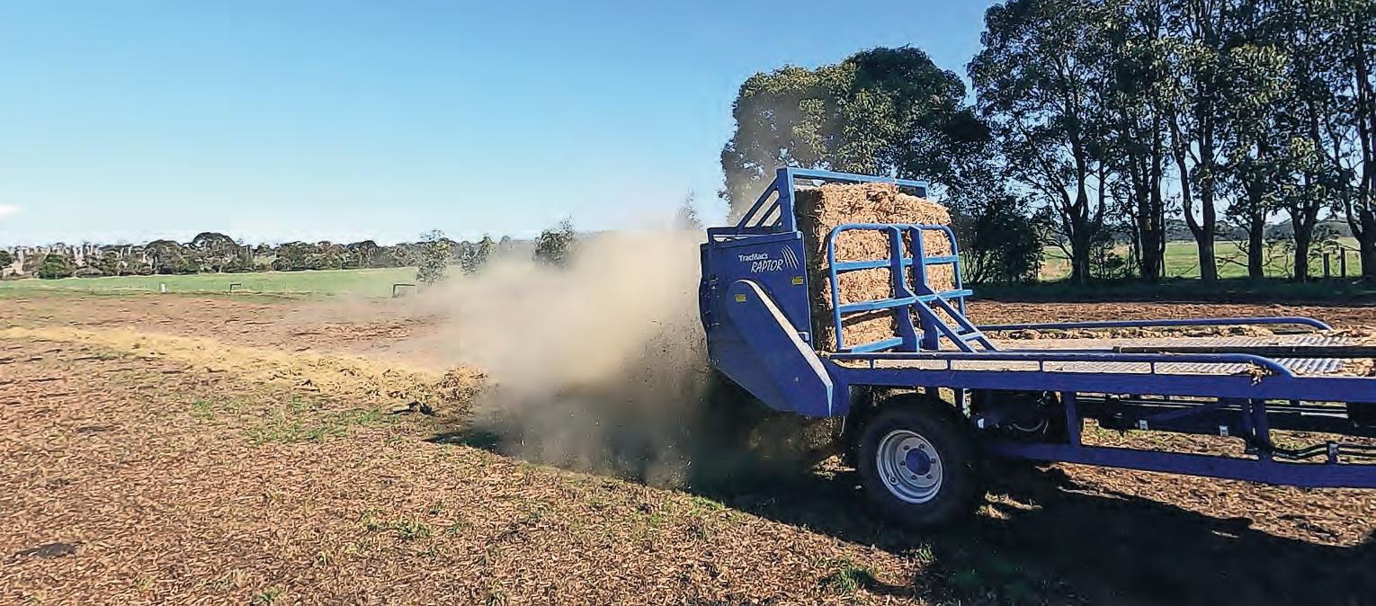 TRACMAC’S RAPTOR large square bale feeder is an new and innovative way for feeding out and breaking up all types of large square hay bales.