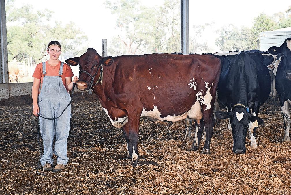 Mikaela Daniel with her grand champion Illawarra, Ovensdale Scarlett 351, at her family’s Nathalia dairy farm.