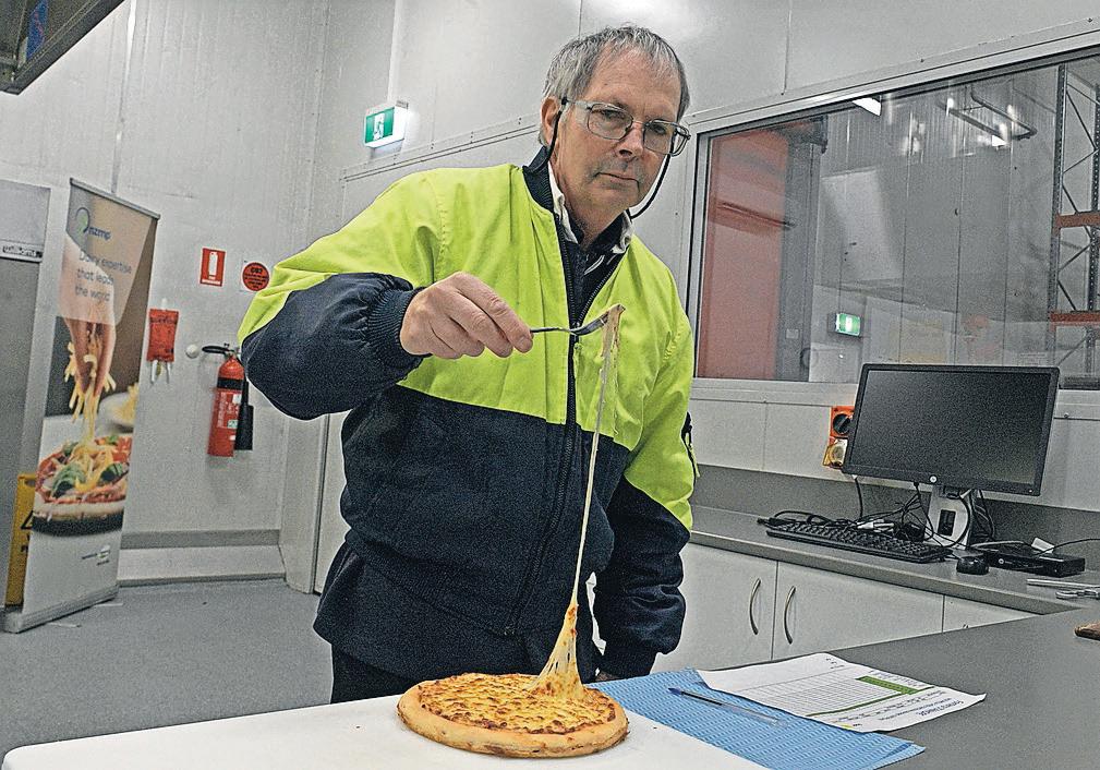 James Harris at work in the Stanhope Fonterra kitchen. The samples of mozzarella have to get past him before the cheese leaves the factory.