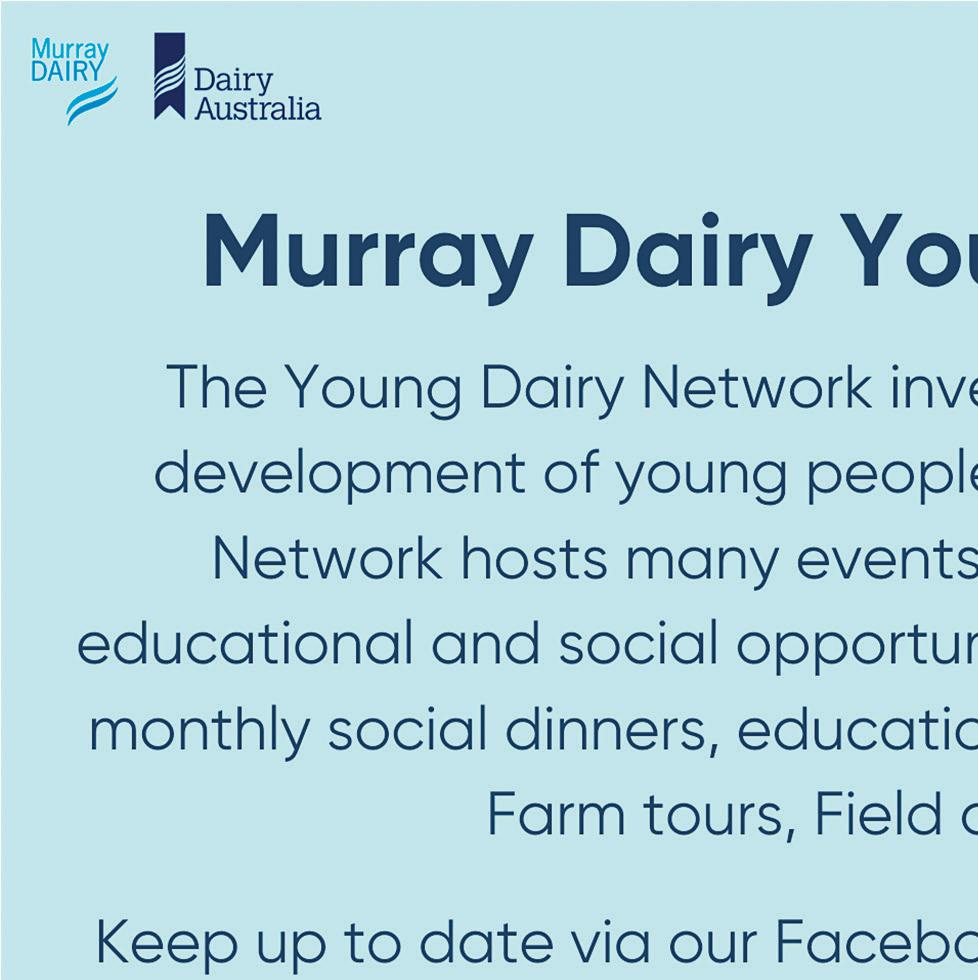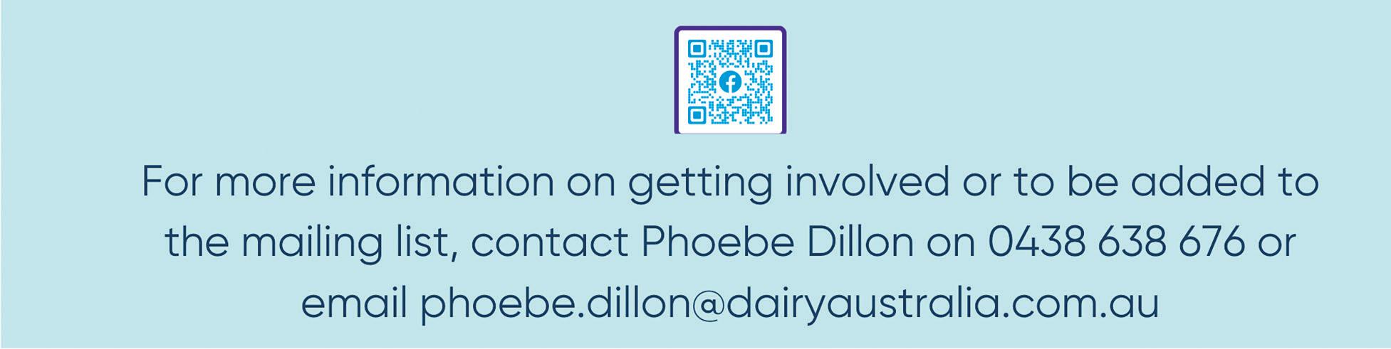 If you have any questions or suggestions regarding the Young Dairy Network in the Murray region, phone Phoebe for a chat on 0438 638 676 or email her at: phoebe. dillon@dairyaustralia.com.au