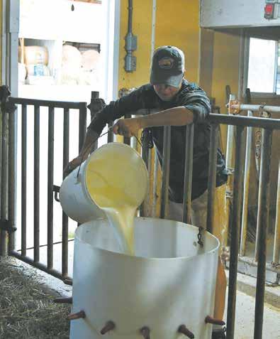 “It takes about two hours (to) pasteurize a batch,” Zimmerman said. “It heats up to 145 degrees and holds it there for 30 minutes. Then the milk is transferred through a chiller and cooled down to 45 degrees before going into a holding vat to be bottled. I can bottle the rst batch while the second is being