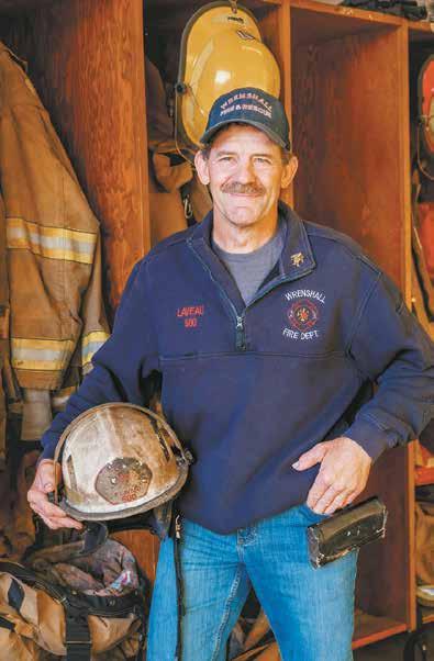 Often, when a late-night call is made, Laveau nds himself working through the night nishing up details from a call at the station before heading home. This includes fueling trucks, washing hoses, replacing parts, cleaning all the equipment used, and ensuring everything is full and ready for the next call. As chief, he also les paperwork and debriefs his team.
