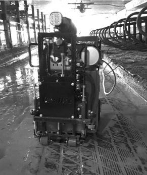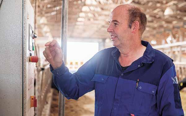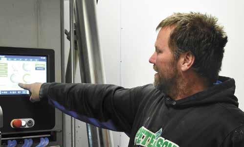 Eduard Reuling checks the se�ngs on his Astor bedding robot Oct. 21 at his farm Snow Rock Dairies LLC near Clarksville, Iowa. They milk 500 cows in a swing-32 parlor.