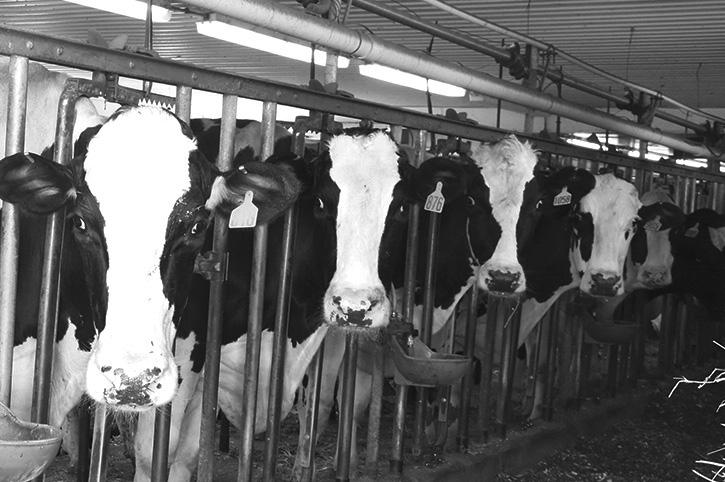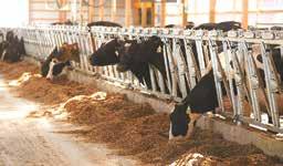 Some of the 650 Holsteins eat Oct. 18 in one of two freestall barns at Schlauderaff Enterprises near Vergas, Minnesota. The Schlauderaffs milk three �mes a day in a double-12 parallel parlor.
