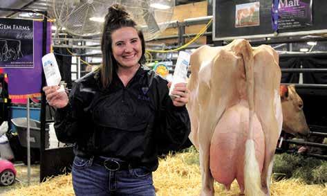 For Dan, this was the year his luck nally turned. As Dan had so desperately hoped coming into this show season, his Milking Shorthorn 2-year-old, Glitzy, bloomed into a beautiful cow. They showed their way to the third spot in our county state fair lineup and earned two champion ribbons at the state fair: overall and net merit. Glitzy sure made up for all of Dan’s show heifers who never made it into a cow class.