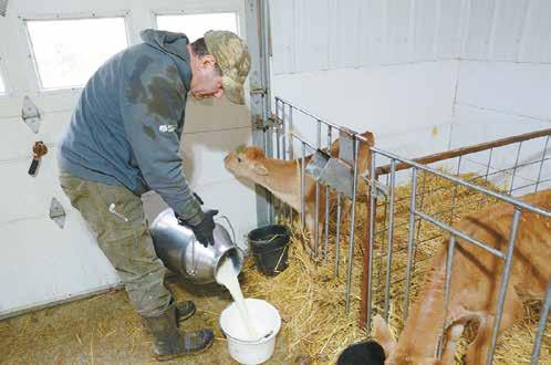 The calves are all bedded, and the containers for milk replacer and calf pellets are full. We know that it can be frustrating when doing calf chores and the supplies need to be restocked to nish the feeding. Every calf is drinking out of a bucket in the calf barn, and only ve bottle babies are in the warm oor shed. That should make it less stressful.