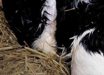 Between tail painting and cleaning the free stalls in the breeding pen, Hendrickson is in with the breeding heifers two or three times a day. He said this