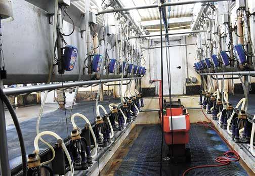 Owen takes care of morning milking in the farm’s parabone double-8 parlor. Cows are milked and housed in free stalls with rubber mats and chopped straw.