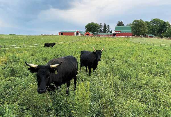 The Benruds use their homegrown bulls as part of their breeding program. They breed their milking herd using A.I. for six weeks then use a bull for any remaining open cows. Because their heifers are on pasture that is difcult to access, they are exclusively bull bred.
