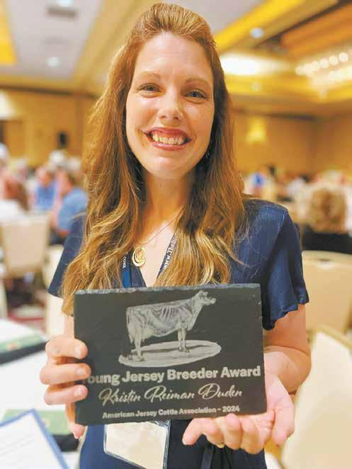 Kris n Reiman Duden holds her plaque June 19 at Sheraton Springeld Monarch Place Hotel in Springeld, Massachuse s. Reiman Duden found out in March that she would be receiving the Young Jersey Breeders Award.