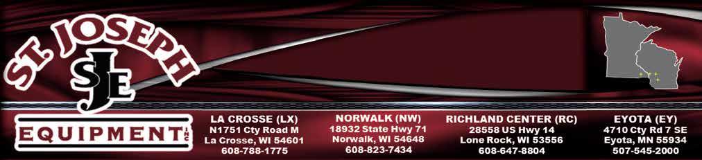 Page 4 • Dairy Star • Third Section • Saturday, July 22, 2023 WWW.STJOSEPHEQUIPMENT.COM NEWEQUIPMENT USEDEQUIPMENT RC BrillionSSB12 Seeder CallForPrice #020561 RC KuhnKnight VT256TMR CallForPrice #021005 LX Anderson IFX720Wrapper CallForPrice #023719 LX MF2250Big SquareBaler CallForPrice #020101 LX Anderson800HS Wrapper CallForPrice #023718 LX Anderson RB200 CallForPrice #021399 RC H&SLW1100 Wrapper CallForPrice #025824 RC CIHFHX300 Chopper CallForPrice #021979 RC H&STF6128 Merger CallForPrice #022613 NW BobcatCT4045 w/Loader CallForPrice #019347 EY GreatPlains706NT Drill CallforPrice #021290 RC Kuhn MergeMaxx301 CallForPrice #021469 RC CIHMD93 DiscMower CallForPrice #022938 RC H&STF6128 Merger CallForPrice #022613 RC KuhnGF7802TGII CallForPrice #025021 LX KuhnGMD16 DiscMower CallForPrice #017788 RC H&SAR2110Rake CallForPrice #021625 NW KuhnGA503IT Rake CallForPrice #025017 LX Fendt828 Vario CallForPrice #019583 EY KubotaU48 CompactExcavator CallForPrice #022851 LX HyundaiHL930AXT WheelLoader CallForPrice #021146 LX HyundaiHL940AXT CallForPrice #023434 RC KuhnVB3190 RoundBaler CallForPrice #024410 EY NHRollBelt 460RoundBaler CallForPrice #024738 EY NHL328 SkidLoader CallForPrice #022689 NW CIHVT-Flex435 CallForPrice #021769 LX KuhnKrause8010-20 Excelerator CallForPrice #018474 LX CIHEcolo-Till2500 CallForPrice #021948 RC Kinze3000 6RowPlanter $30,000 #026404 LX CIHFarmall110C CallForPrice #021783 LX CIHMaxxum115 w/DiamondMower CallForPrice #019695 LX Massey4707 CallForPrice #023660 LX Supreme600TTMR CallForPrice #023262 LX RiteWayF3-42 Roller CallForPrice #023768 LX CIHFarmall75C CallForPrice #021784 LX J&M1151GrainCart CallForPrice #021559 NW BobcatT86 TrackLoader CallForPrice #024603 NW BobcatS770 SkidLoader CallForPrice #023231 LX HyundaiHW140A CallForPrice #024521 LX HyundaiHX160L Excavator CallForPrice #019827 LX HyundaiHX260AL Excavator CallForPrice #019920 EY NewHollandT5.120 $86,900 #026159 NW JDX739Mower CallForPrice #026898 EY JCB85Z Excavator $79,500 #021934 LX ‘95GlencoeSS7200 7Shank $6,985 #023950 NW Demco650 GrainCart $24,500 #025135 NW ‘13CIH1245 12/23ROW $85,000 #025137 LX ‘05Krause5250Drill $8,995 #024954 LX ‘19Fendt828Vario $299,985 #025539 LX Fendt930 w/TripleMower CallForPrice #026317A EY ‘18NHCR8.90 Combine $299,900 #022529 LX ‘19CIH8250 Combine,4WD,Sharp! $399,000 #025333 RC ‘09CIH6088 Combine $99,500 #025777 NW ’06KuhnGA8521 Rake $26,500 #025144 LX Supreme800TTMR $44,900 #025096 LX Supreme400TMR $22,985 #026502 NW ‘05BrillionZS5302 5ShankRipper $13,500 #025132 RC CIH6Row Planter $18,500 #026416 LX ’19CIH540 Quadtrac $459,985 #025051 NW ’14CIHFarmall50B $29,985 #025130 LX CIH JX1095C $26,985 #023700 LX ’13CIH Magnum315 $189,985 #024645 LX ‘14KuhnKnight 8124Spreader $9,995 #018321 LX H&S3143 Spreader $25,900 #025491 LX ’16Meyer3954 Spreader $9,985 #024255 LX ‘08MF3722 Spreader $7,900 #025662 NW ’17BobcatT770 TrackLoader $55,985 #023663 RC ’09CIHWD1903 SPMow/Cond $69,500 #025778 NW ’17MF1383 MowConditioner $28,900 #026642 LX ’19CIH6150 Combine $325,000 #025426 EY ‘18Geringhoff Truflex40 $79,900 #022249 LX NH315Small Squarew/Thrower $5,900 #023856 LX NHFP230 ForageHarvester $19,985 #026061 LX ‘17KuhnFC10030D TripleMower $53,000 #022194 LX ‘05VermeerMC840 Discbine $13,900 #025643 LX ‘04NH1431 Discbine $11,900 #024640 LX ‘16NHFR780 SPChopper $220,000 #022206 RC ’19BobcatT770 TrackLoader CallForPrice #026281 LX Meyer4516 ChopperBox $15,900 #025620 LX Kinze 8/15Planter $62,500 #026552 LOW HOURS! CHOOSE FROM3! LIKE NEW!