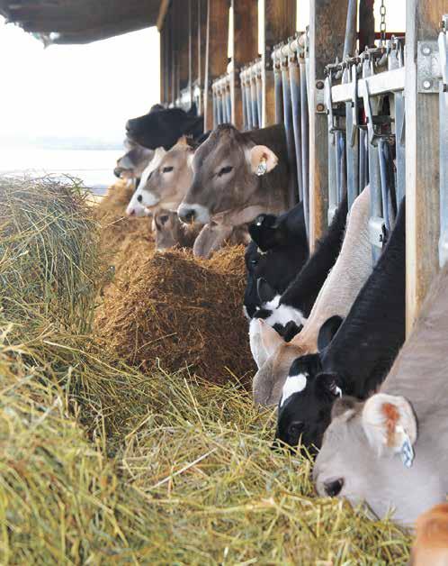 Cows are fed a total mixed ration that consists mostly of corn silage that has been interplanted with sorghum sudangrass. The Hauschildts also raise cereal grains and triticale that is interplanted with Italian rye. They quit growing and feeding alfalfa and hay ve years ago.