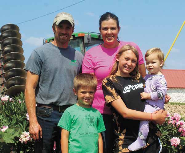 The Riebe family – Levi (front, from le ) and Tani holding Tori; (back) Mark and Tanya – milk 100 registered Jerseys on their family’s Meadow Ridge Jerseys dairy farm near Cumberland, Wisconsin.