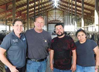At Duane’s site, with its enclosed freestall barn and certied manure pit, the cows are milked during winter in a swing-7 parlor. At feeding time, baleage bales are unrolled and a TMR feed mix made up of corn silage, grain,
