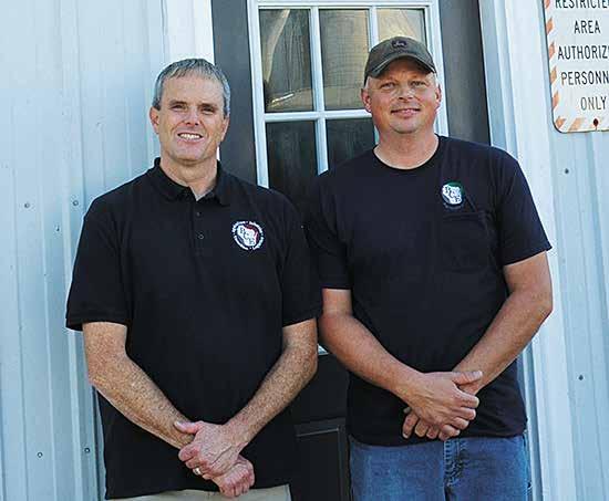 Wes Ray, director of the Bureau of Correc onal Enterprises, (le ) and Jason Hensel, supervisor of Waupun State Farm, led a tour Sept. 8 at the Waupun State Farm located near Waupun, Wisconsin. The 360-cow, 1,700-acre dairy farm employs prisoners from the John C. Burke Correc onal Center.