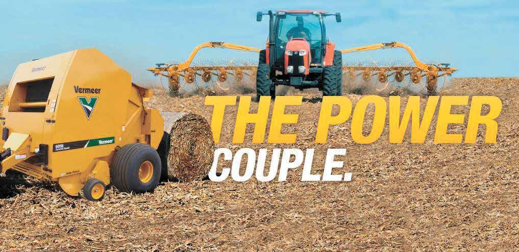 Cornstalk baling is a tough task, so operators in the livestock and biomass industries turn to this tandem for its combination of productivity and operating e ciency. The VR1428/VR2040 high-capacity wheel rakes can cover more acres in less time and the Vermeer 605N Cornstalk Special baler nishes the job. Together they deliver the performance and toughness needed to help overcome the harsh conditions of cornstalk baling. Time to team up. Vermeer
