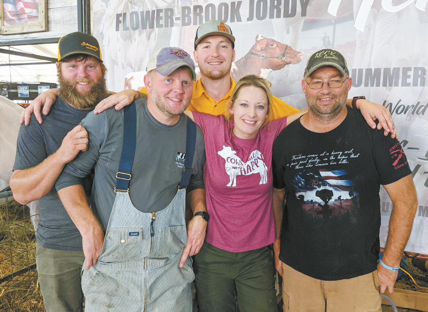 The team from Flower Brook Farm, including Nick Pierson (from le ), Brad Pierson, Tanner Morrison, Nikki Dube and Billy Hoen, receive the Herdsmanship Award for Tent 1 Zone B Oct. 3 at World Dairy Expo in Madison, Wisconsin. Flower Brook is located in Hamburg, Minnesota.