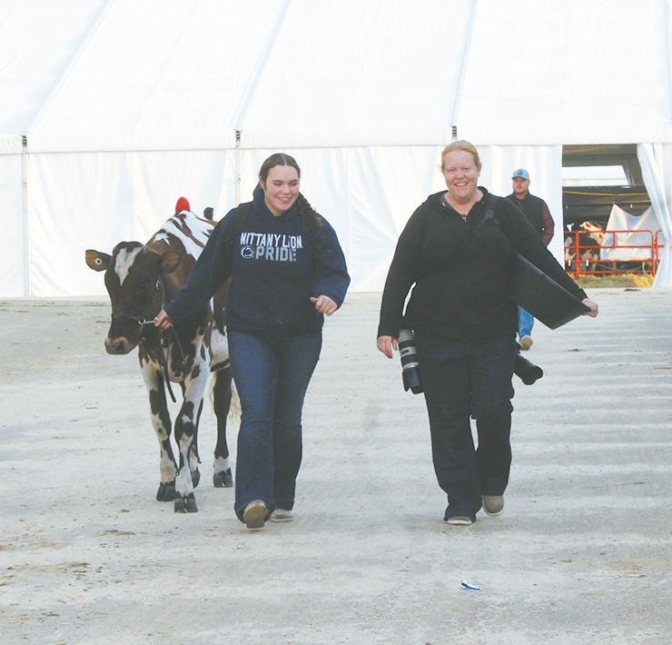 Nicole Arrowsmith (le ) and An- drea Haines return from an early- morning photo shoot under the willows with Nicole’s Ayrshire heifer Oct. 3 at World Dairy Expo in Madison, Wisconsin. Nicole was awarded the heifer, Budjon-Vail Rynlds Kiwi, by the Hellenbrand Las ng Legacy Award Founda on. Kiwi placed fi h and was the first junior-owned entry in the Interna- onal Ayrshire Show Fall Yearling Class.