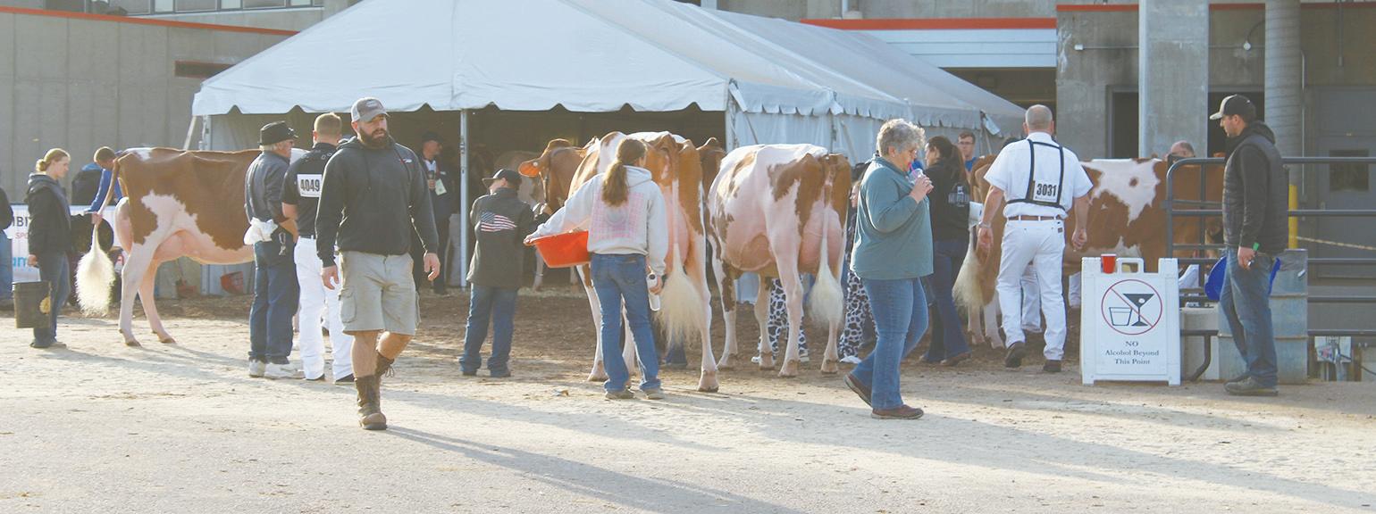 Red & White and Guernsey exhibitors wait outside the Coliseum for their classes Oct. 3 at World Dairy Expo in Madison, Wisconsin. Each of the shows began Wednesday with their heifer classes and concluded Thursday with their cow classes.