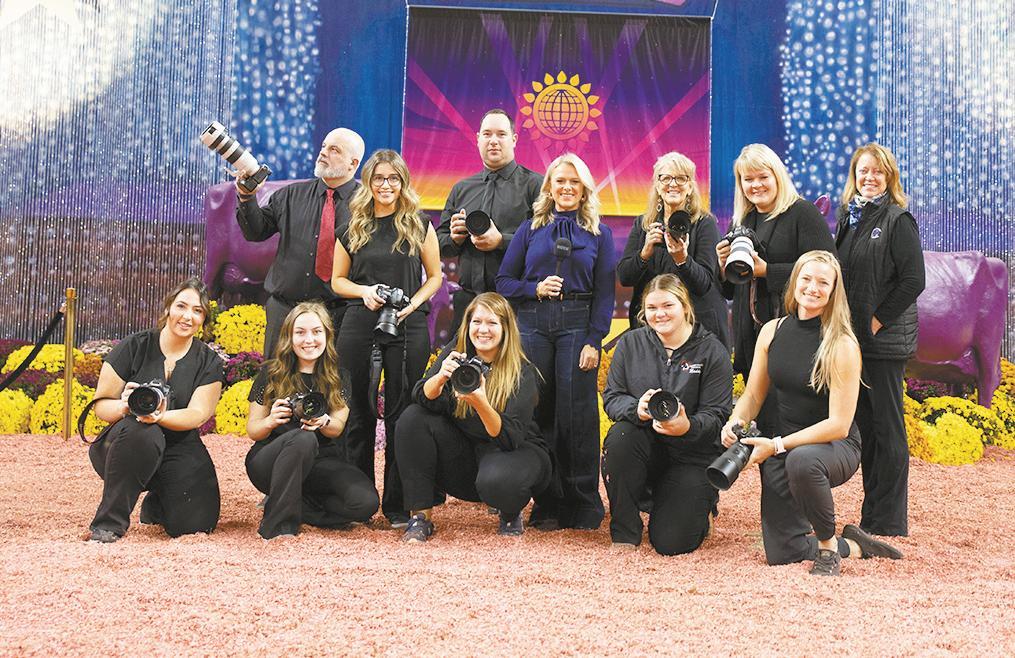 Showring photographers from Cowsmopolitan, Dairy Agenda Today and The Bullvine work to capture the shows at World Dairy Expo for exhibitors, spectators and dairy industry enthusiasts around the world Oct. 3 in Madison, Wisconsin. Pictured are Eve Tomlin- son (front, from le ), Katelyn Poitras,