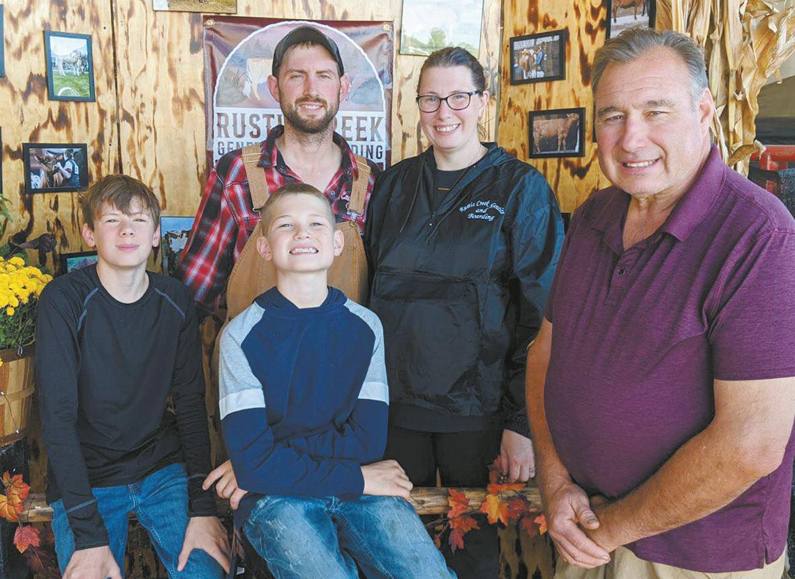Mase’s Manor and Bell Valley Farm win the Tent 2 Zone A Herdsmanship Award Oct. 3 at World Dairy Expo in Madison, Wisconsin. Receiving the award are Brian and Traci Neely (le ) with their son, Landon (front, le ), and Garre and Maggie Mase (right) with their children, Makenna, Maverick and McKinleigh (front right).