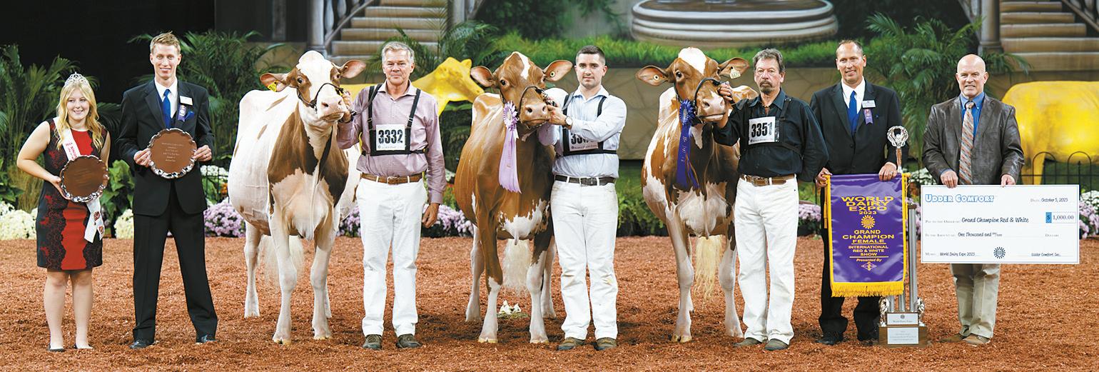 & White Show Oct. 5 a er winning the Four-Year-Old Cow Class at World Dairy Expo in Madison, Wisconsin. Lilly is owned by Jim Butler. Ransom-Rail Beth-Red is named Reserve Senior and Reserve Grand Champion, a er winning the Five-Year-Old Class. She is exhibited by MilkSource, Ransom-Rail and Fischer. Golden-Oaks Temptres-Red-ET is named Intermediate and Honorable Men on Grand Champion a er winning the Senior Three-Year-Old Class. She is owned by MilkSource, Fischer, Steincrest and Crescentmead.