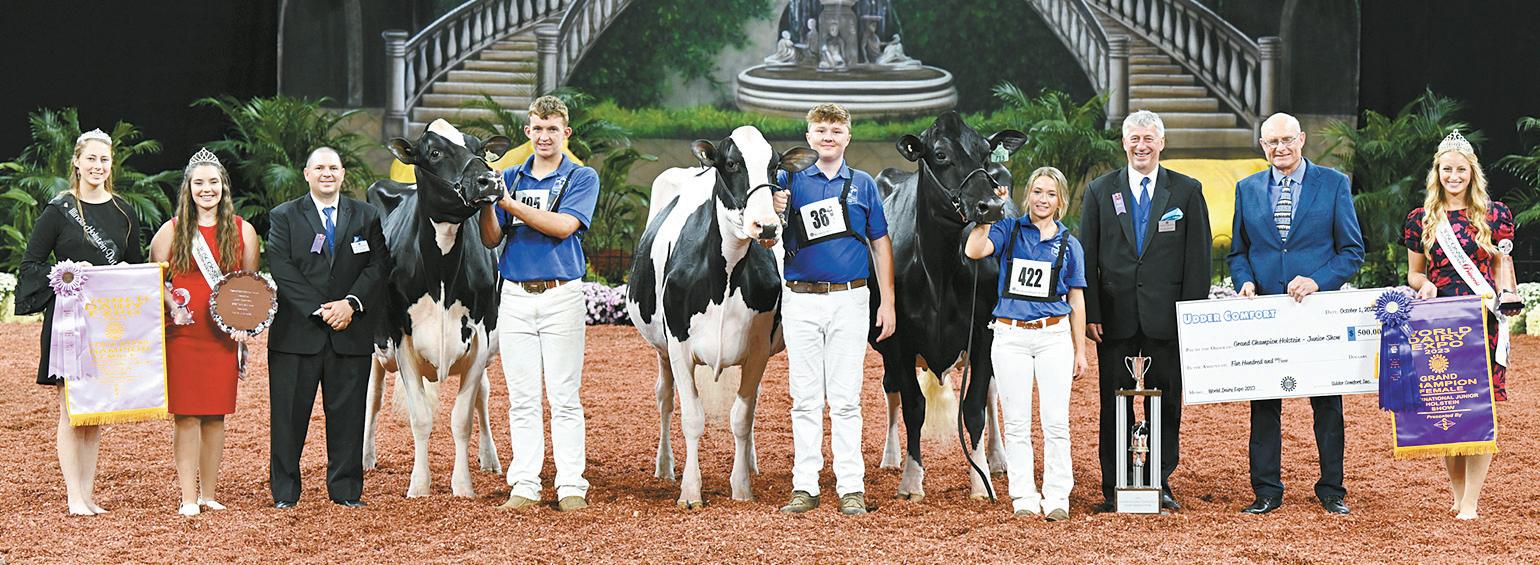 winning Senior Three-YearOld, Ms GW Atwood Desire exhibited by Isabella Pires of Modesto, California. Earning a handshake as Honorable Mention was the second-place Junior Three-Year-Old, Vriesdale Othello Bianca exhibited by Carter Kruse and Carson Rauen of Dyersville, Iowa. For the second year, the Champion Bred and Owned