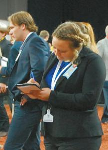 Contestants in Sunday’s Na onal Intercollegiate Dairy Ca le Judging Contest, Interna onal Post-Secondary Dairy Ca le Judging Contest and Na onal 4-H Dairy Ca le Judging Contest enter their scores into computers midway through the compe on.