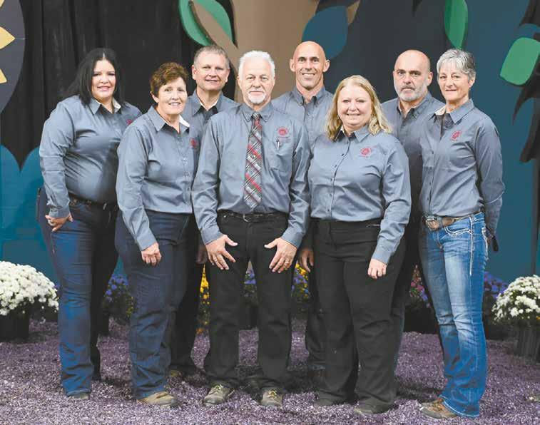 The team of World Dairy Expo superintendents — Jen Keuning (from le ), Paula Bovre, Mike Marean, Dave Bollig, Jon Rasmussen, Kim Moucha, Steve Sievert and Suzanne Lois — gathers for a photo Sept. 30, 2021, at World Dairy Expo in Madison, Wisconsin. The superintendents team handles stalling and oversees each of the week’s eight breed shows.